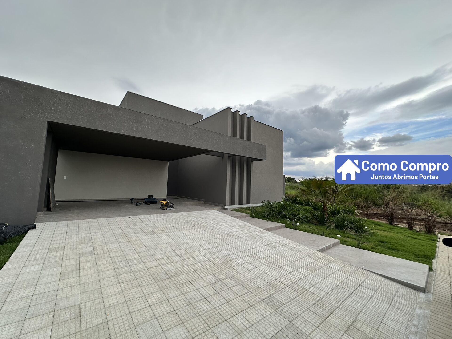 As casas vão seguir o seguinte padrão, vaga para 4 carros, sala com pé direito alto e integração com espaço gourmet, cozinha, área de serviço, lavabo, duas semi-suítes, uma suíte e uma suíte master.